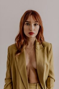 - Włosy – zadbaj o to, żeby były świeże. Możesz zrobić delikatne loki, jeżeli dobrze się w nich czujesz. Na sesji lepiej sprawdzają się włosy rozpuszczone.